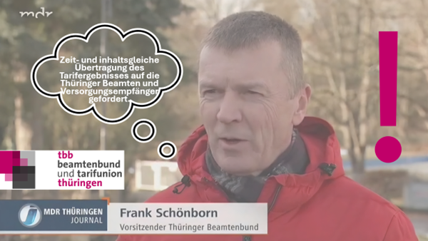 Für den Thüringer Beamtenbund (tbb) ist das in Potsdam ausgehandelte Tarifergebnis vom 14. Februar 2026 erst dann beendet, wenn das Ergebnis des Tarifabschlusses zeit- und inhaltsgleich auf die Beamtinnen und Beamten sowie die Versorgungsempfängerinnen und Versorgungsempfänger übertragen wird.